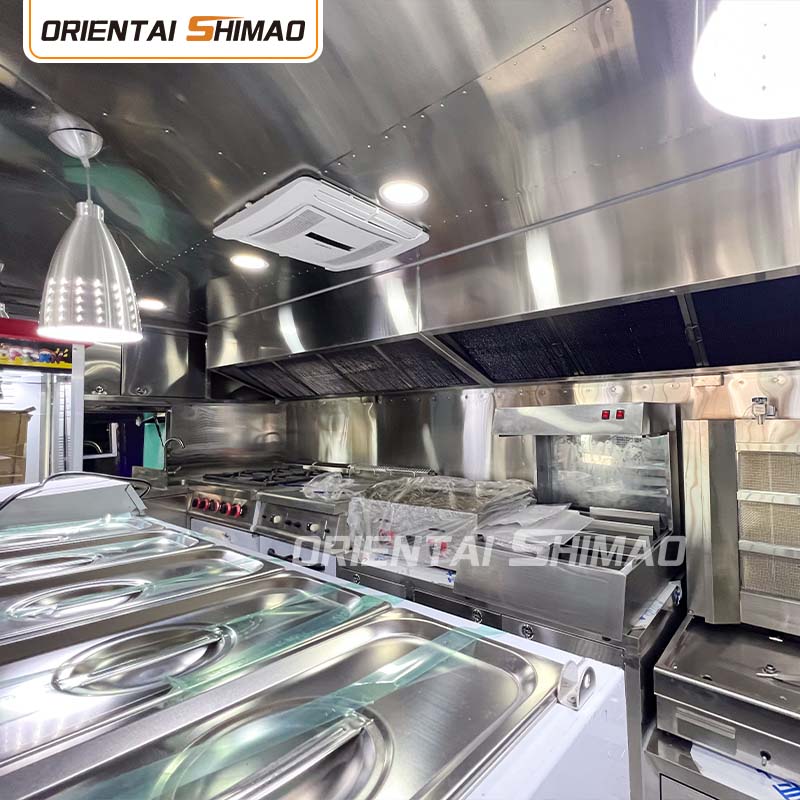 Vielseitigkeit: Um den Anforderungen verschiedener Catering-Szenarien gerecht zu werden, ist in das Fahrzeug eine Vielzahl professioneller Koch- und Aufbewahrungsgeräte eingebaut, die von Kochutensilien bis hin zu Stauraum für Zutaten reichen und den Anforderungen vielfältiger und hocheffizienter Catering-Betriebe gerecht werden und die Betriebseffizienz erheblich steigern, sei es beim Kochen vor Ort oder bei der Lieferung von Fastfood.
