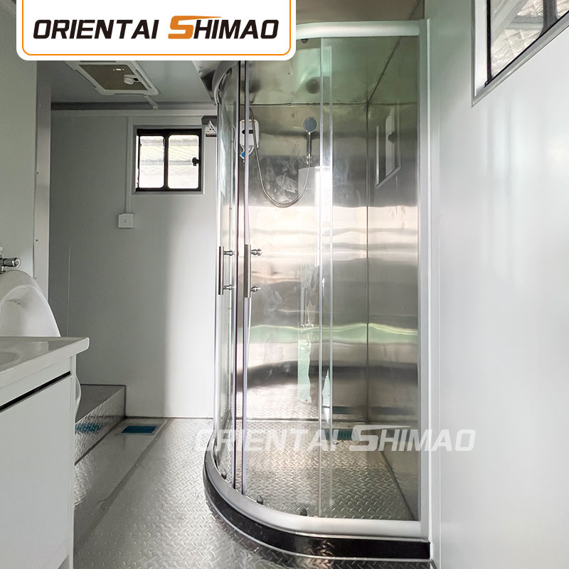 Modulares Design: Dieser Sanitärwagen ist modular aufgebaut. Benutzer können die Anzahl der Einheiten und Konfigurationen entsprechend den tatsächlichen Anforderungen auswählen, z. B. Einzelzimmer, Doppelzimmer oder Familienzimmer usw., um den Anforderungen verschiedener Anlässe flexibel gerecht zu werden. Jede Einheit ist mit einem eigenen Belüftungssystem, Waschbecken und Beleuchtung ausgestattet, um Komfort und Privatsphäre zu gewährleisten.