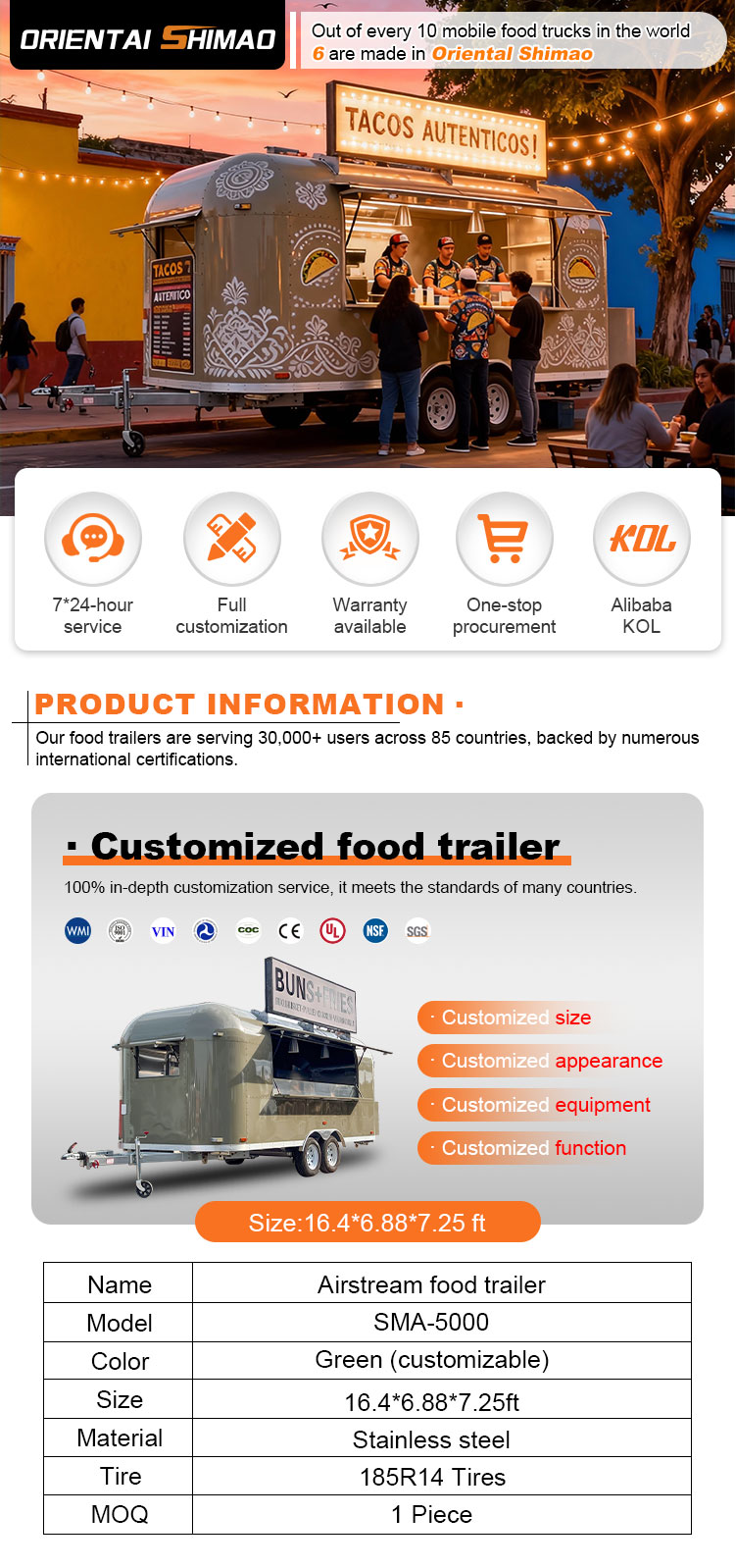 Wir können Food-Catering-Anhänger-Zertifizierungen anbieten: DOT, CE, SGS, SCI, ISO, COC,