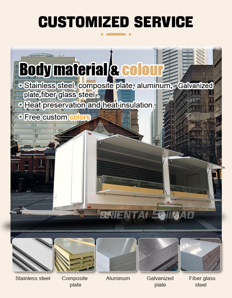 Bei der Erörterung der überlegenen Qualität des orientalischen Shimao -Lebensmittelanhängers Edelstahl ist es wichtig, die sorgfältig ausgewählte und geniale Kombination von Materialien zu erwähnen, die dem Wagen nicht nur seine einzigartige Haltbarkeit verleihen, sondern auch seine praktische und hygienische Standards erheblich verbessern, um sicherzustellen, dass jeder Kunde ein sicheres und komfortables Erlebnis für das Abendessen genießen kann.