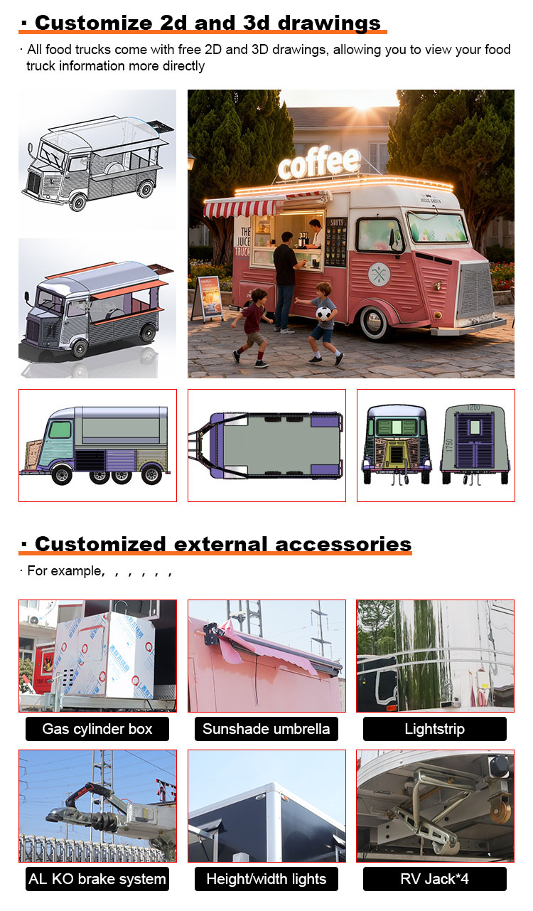 Vielseitigkeit: Um den Anforderungen verschiedener Catering-Szenarien gerecht zu werden, ist in das Fahrzeug eine Vielzahl professioneller Koch- und Aufbewahrungsgeräte eingebaut, die von Kochutensilien bis hin zu Stauraum für Zutaten reichen und den Anforderungen vielfältiger und hocheffizienter Catering-Betriebe gerecht werden und die Betriebseffizienz erheblich steigern, sei es beim Kochen vor Ort oder bei der Lieferung von Fastfood.