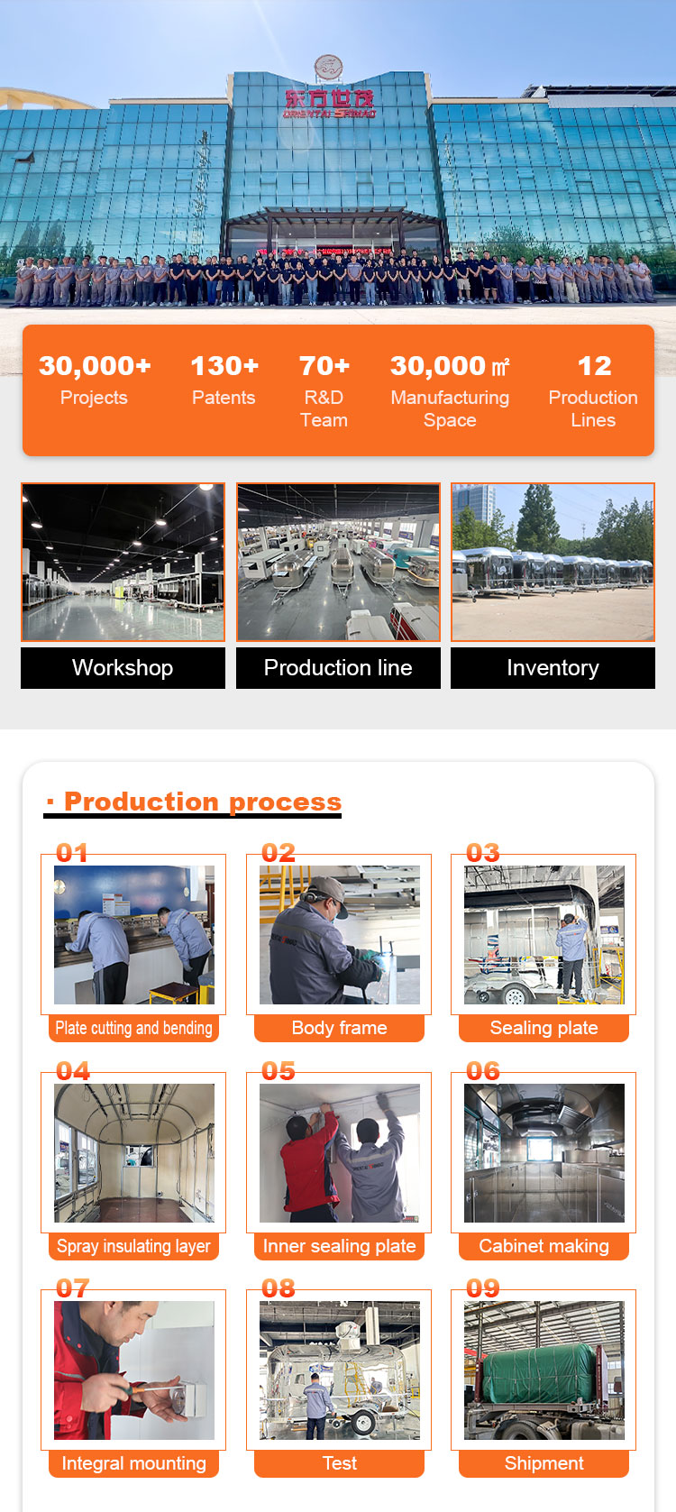 Als Hauptmaterial haben wir uns für hochwertigen Edelstahl 304 entschieden, der für seine hervorragende Korrosionsbeständigkeit und hervorragende Haltbarkeit bekannt ist und unter verschiedenen Umgebungsbedingungen eine stabile Leistung aufrechterhalten kann. So stellen wir sicher, dass unsere Trailer Food Truck-Produkte auch langfristig ihre hervorragende Qualität und Funktionalität beibehalten und einer Vielzahl von Herausforderungen standhalten können. Die hervorragende Korrosionsbeständigkeit des Edelstahls 304 sorgt dafür, dass der LKW nicht leicht durch Oxidation oder Rost beeinträchtigt wird, was seine Lebensdauer erheblich verlängert. Die hervorragende Korrosionsbeständigkeit von Edelstahl 304 macht den LKW weniger anfällig für Oxidation oder Rost, was seine Lebensdauer erheblich verlängert.