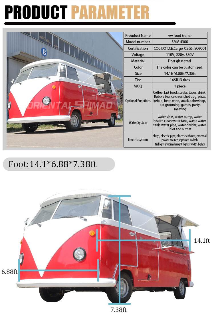Orientaler Shimao High Dach VW Food Truck (Modell: SMV-4300) ist eine High-End-Lösung für mobile Küchen, die für vielseitige Catering und kommerzielle Anwendungen entwickelt wurden. Egal, ob es sich um Street Food, Kaffeegetränke oder vielfältige Catering -Dienstleistungen handelt, in diesem Trailer haben Sie abgedeckt. Es wird mit sorgfältig ausgewählten Qualitätsmaterialien und fortschrittlichen Herstellungsprozessen konstruiert, um sicherzustellen, dass es in einer Vielzahl von Umgebungen eine überlegene Leistung und lang anhaltende Haltbarkeit liefert. Street Airstream Food Trailer ist zweifellos die beste Wahl für Unternehmer, die sich in der mobilen Catering -Branche einen Namen machen möchten.