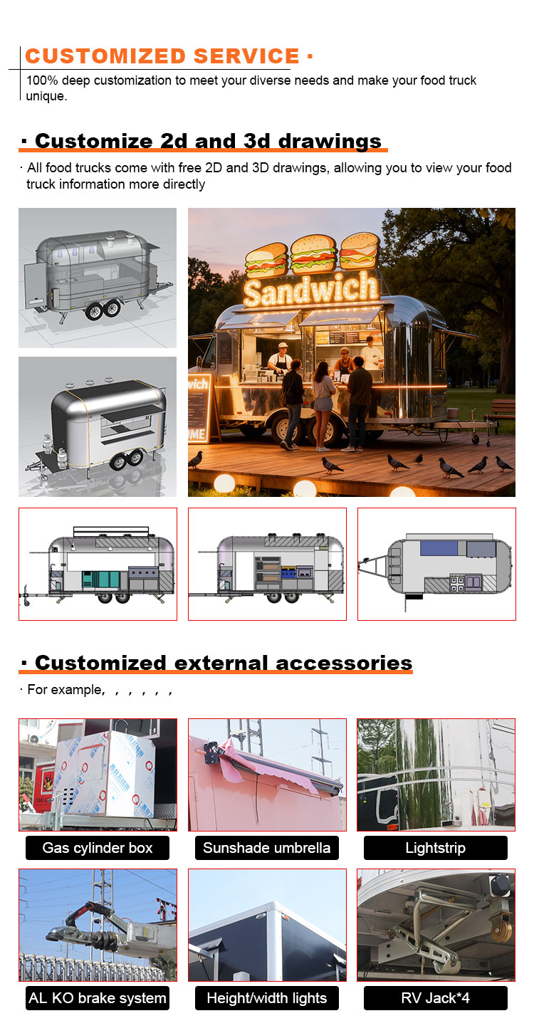 Imbisswagen, mobile Küche, kommerzielle Restaurantausrüstung, Catering, elektrischer Lebensmittelanhänger, Straßen-Imbisswagen