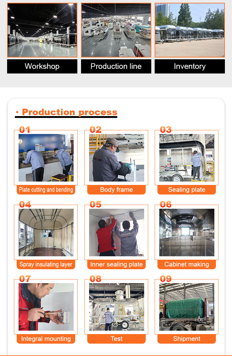 Von der Bedarfsanalyse und dem maßgeschneiderten Design über die Materialauswahl und -beschaffung, die Fertigung, den Einbau der Innenausstattung, die Außendekoration und Beschilderung, die Prüfung und Qualitätskontrolle, den Vertrieb und die Installation bis hin zum Kundendienst und der Wartung begleiten wir Sie bei jedem Schritt.