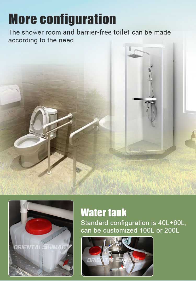 Das orientalische Shimao Mobile Toilet House ist die optimale sanitäre Lösung für eine Vielzahl von Außenstandorten, Anforderungen an die temporäre Einrichtung und Notfallsituationen. Mit seinem modernen Design und dem hervorragenden Feature -Set bietet es Benutzern nicht nur ein komfortables Toilettenerlebnis, sondern verbessert auch den Hygienestandard des gesamten Veranstaltungsortes. Egal, ob es sich um eine große Veranstaltung, eine Baustelle oder eine Notfallreaktion handelt, dieser tragbare Toilettenwagen sorgt für eine saubere und bequeme Umgebung.