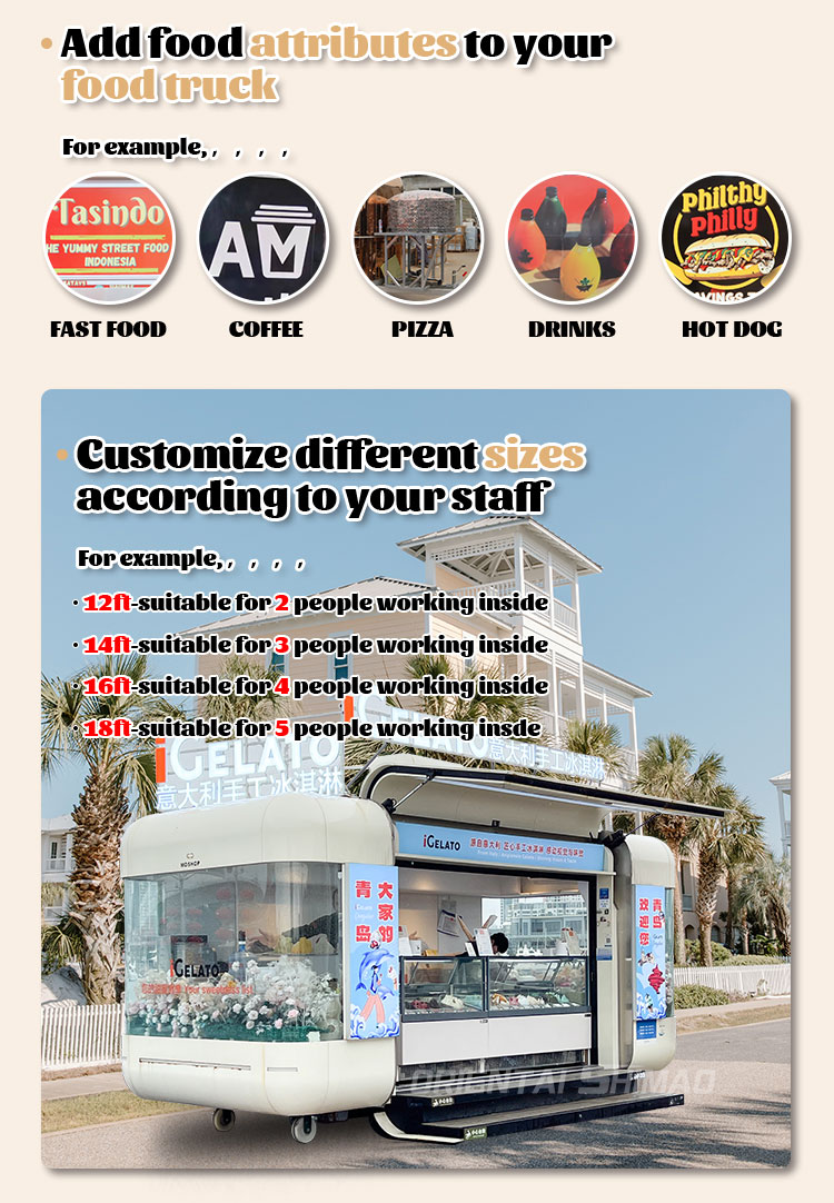 Material und Prozess: Wählen Sie hochwertige Materialien und fortschrittliche Herstellungsverfahren, um sicherzustellen, dass das Erscheinungsbild des Imbisswagens schön und langlebig ist.