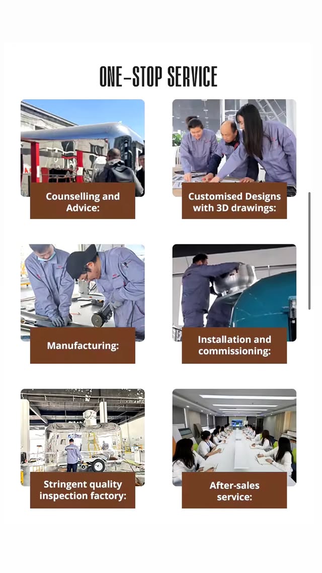 Mit jahrelanger Branchenerfahrung und einem gut etablierten Produktionssystem ist unser Werk mit fortschrittlichen Fertigungsanlagen und einem kompetenten technischen Team ausgestattet. Wir sind in der Lage, Food-Trailer an unterschiedliche regionale Vorschriften und Marktanforderungen anzupassen. Von Kaffeeanhängern und Fast-Food-Einheiten bis hin zu voll ausgestatteten mobilen Küchen bieten wir umfassende Unterstützung von der Konstruktion und Herstellung bis zur endgültigen Lieferung.