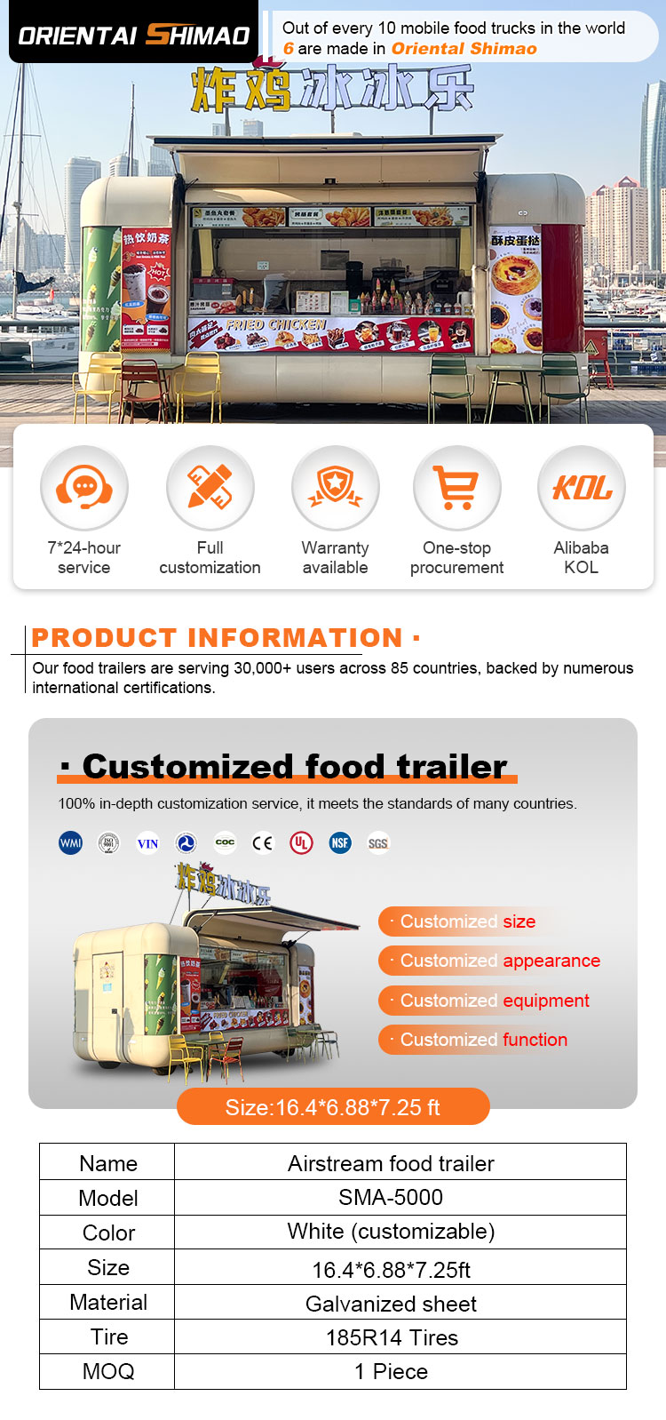 Wir können Pizza-LKW-Zertifizierungen anbieten: DOT, CE, SGS, SCI, ISO, COC,