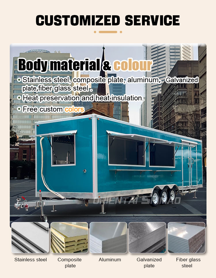 Zusätzliche Funktionen: Fügen Sie je nach Kundenwunsch weitere Zusatzfunktionen hinzu, z. B. Kühlung und Frischhaltung, Heizung und Wärmekonservierung, Wasserdichtigkeit und Anti-Elektrizität usw., um die Praktikabilität und Sicherheit des Imbisswagens zu verbessern.