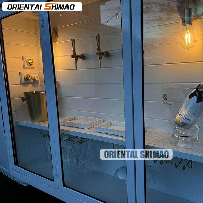 Dreiradanhänger, externes mit verzinktem Blatt hergestellt, alles Schrank mit Holz, rein handgefertigter Anpassung. TAPS, die von 304 SS hergestellt wurden, und Sie können die TAP -Farbe auswählen, normalerweise goldene Farbe.